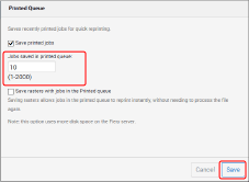 Rediger antallet i [Jobs saved in printed queue], og klik på [Save].