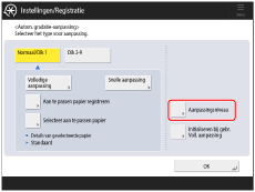 Druk op <Selecteer aan te passen papier> en selecteer het papier voor de kalibratie dat u hebt geplaatst of <Standaard> (voor het aanbevolen papier).