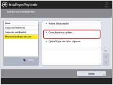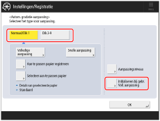 Selecteer het papier dat u wilt corrigeren en druk vervolgens op <Initialiseren bij gebr. Voll. aanpassing>.