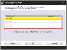 Selecteer het papier dat u in stap 3 voor <Selecteer aan te passen papier> hebt geregistreerd.
