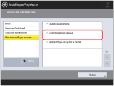 Zorg ervoor dat "Canon Top Colour Zero FSC (100 g/m2)" ook goed is geplaatst voor gebruik, naast het papier dat u wilt registreren als papier voor kalibratie (één soort of twee soorten).