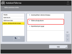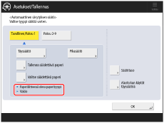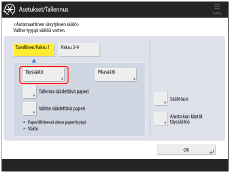 ”Perustoiminnot” > ”Paperin koon ja tyypin määrittäminen” > ”Paperin koon ja tyypin määrittäminen paperisäiliölle/kasetille” – Käyttöopas