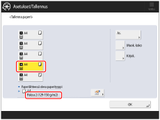 Valitse <Tavallinen 2 (76 g/m2 – 90 g/m2)> kohdassa "paperityypin valinta".