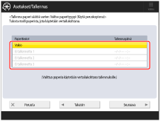 Jos vaihdat tallennetun paperin paksuuden mukaan, valmistele (kahdentyyppiset) paperit, joiden paksuudet haluat tallentaa.
