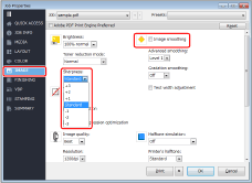 Napsauta [IMAGE]-välilehteä ja muuta tulostusasetuksia kohdassa [Image smoothing] tai [Sharpness] tarpeen mukaan.