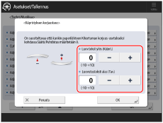 Tämä toiminto voi vaikuttaa paperin syöttämiseen. Koska suuri arvon lisääminen saattaa aiheuttaa paperitukoksia, on suositeltavaa säätää arvoja pienin askelin.