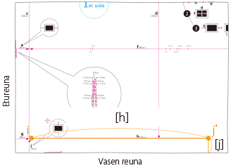 Jos testisivu on niin pieni, että "j" ei ole sivulla, lisää satunnaismerkki "j'" minne tahansa punaisen viivan varrelle "h". Anna sitten etäisyys "j'"-merkistä paperin vasempaan reunaan kohdassa [j]. Anna etäisyys merkistä "i" merkkiin "j'" kohdassa [h].