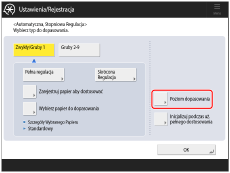 Wybierz <Standardowy> (w przypadku papieru zalecanego) lub papier do kalibracji załadowany w kroku 1 dla <Wybierz papier do dopasowania>.