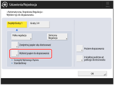 Naciśnij <Wybierz papier do dopasowania> i wybierz załadowany papier do kalibracji lub <Standardowy> (w przypadku zalecanego papieru).