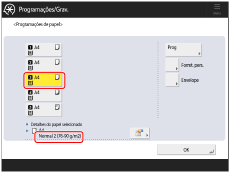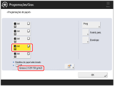 → <Preferências> → <Programações de papel> → <Programações de papel> para verificar o tipo de papel.