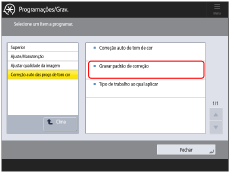 Programe o <Nível de correção> da calibração automática da gradação para <Por grupo tipo papel>.
