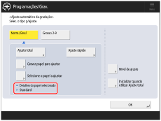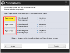 Selecione o papel que pretende corrigir e carregue em <Inicializar quando utilizar Ajuste total>.