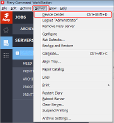 Clique em [Server] → [Device Center] em Command WorkStation.