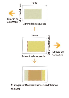 O papel tem tendência para expandir quando absorve humidade num ambiente de elevada humidade. Se isso acontecer, as imagens poderão ser impressas numa posição incorreta. Por exemplo, a imagem pode ser impressa no canto esquerdo inferior e não no centro, como previsto. Ou, as imagem impressas na frente e no verso do papel podem estar desalinhadas.
