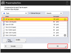→ <Preferências> → <Programações de papel> → <Programações de papel> e altere um tipo de papel da origem de papel para esse papel.