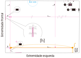 Se a página de teste for tão pequena que "j" não está na página, adicione uma marca arbitrária "j’" em qualquer parte na linha vermelha "h". Em seguida, introduza a distância de "j'" para a extremidade esquerda do papel em [j]. Introduza a distância de "i" para "j'" em [h].