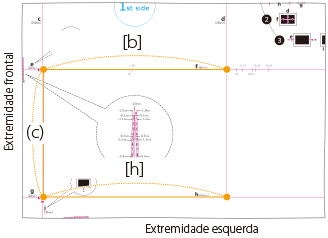 Se a página de teste for tão pequena que as distâncias b e h não podem ser medidas, adicione "c’", "b'" e "h'", consoante apresentado na ilustração à direita. Introduza estas distâncias em [c], [b] e [h] respetivamente.