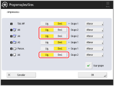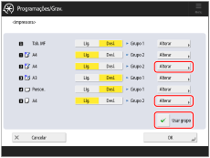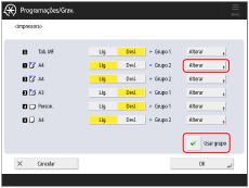 Selecione <Usar grupo> → carregue em <Alterar> para a origem de papel