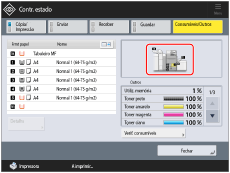Se desmarcar a caixa de verificação de <Produtividade ideal>, a impressora muda de uma origem de papel para outra assim que ficar completamente sem papel na que estiver a ser utilizada para fornecer papel. A impressão é interrompida por um pequeno momento durante esta troca da origem de papel. Se selecionar a caixa de verificação de <Produtividade ideal>, a impressora muda de uma origem de papel para outra quando ainda restarem 50 a 100 folhas de papel na que estava a ser utilizada. Isto pode impedir a interrupção de um trabalho de impressão e ajudar a melhorar a produtividade.