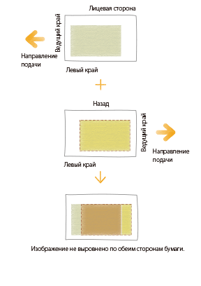 Аппарат определяет позицию начала печати на основе ведущего края бумаги. После печати лицевой стороны бумага переворачивается и обратная сторона бумаги печатается от заднего края. Поэтому положение начала печати на обратной стороне бумаги может немного отличаться.