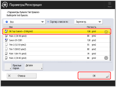 → <Предпочтения> → <Параметры бумаги> → <Параметры бумаги> и выберите торговую марку загруженной бумаги.