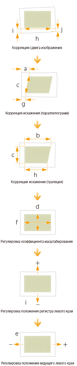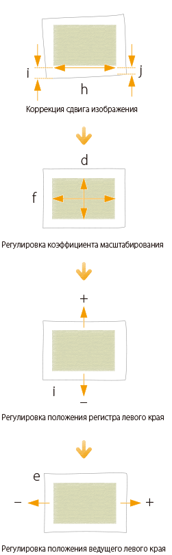(регистрирующих меток) не совпадает, отрегулируйте положение изображения в указанной ниже последовательности.