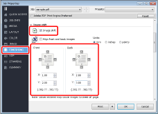 Перейдите на вкладку [FINISHING], выберите [Image shift] и введите значение в миллиметрах (дюймах) для перемещения изображения по горизонтали (ось X) и по вертикали (ось Y).