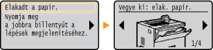 Ha papírelakadás történik, értesítő hanghatás hallatszik, és az <Elakadt a papír.> üzenet jelenik meg a képernyőn. Egyszerű megoldások megjelenítéséhez nyomja meg a