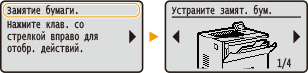 Если происходит замятие бумаги, подается звуковой предупреждающий сигнал и на экране отображается сообщение <Замятие бумаги.>. Нажмите