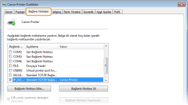 Makinenin IP adresini değiştirdiyseniz veya sürücü yüklerken yanlış bağlantı noktasını seçtiyseniz, yeni bir bağlantı noktası ekleyin.