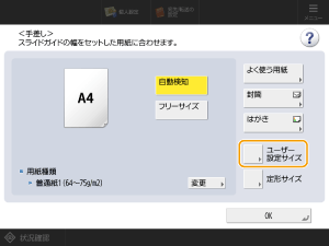 [原稿サイズ]で手順1で登録した用紙サイズを選ぶ