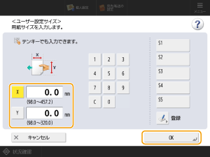 <X>辺と<Y>辺の長さを設定して、<OK>を押す
