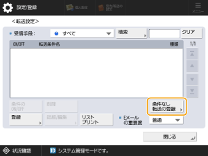 すべてのファクス受信文書を転送対象にする場合は、<条件なし転送の登録>を選択します。