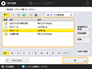 登録した「AさんのEメールアドレス」を転送先として選び、<OK>を押す