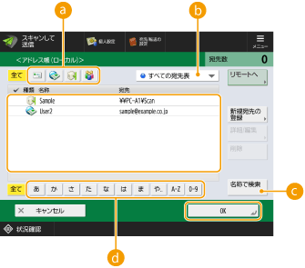 頭文字指定ボタン頭文字を指定して宛先を絞り込むことができます。