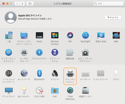 [システム環境設定]を開いて[プリンタとスキャナ]をクリックする