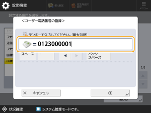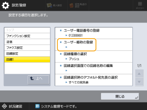 ファクス回線1にユーザー略称/ユーザー電話番号を登録する