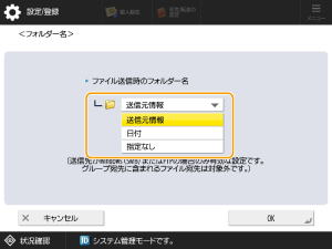 フォルダ名は、<送信元情報>、<日時>、<指定なし>から選択することができます。