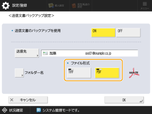 <フォルダー名>を押して、バックアップ用の文書が保存されるフォルダの分類を設定したあと<OK>を押す