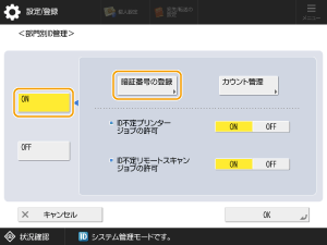 部門別ID管理はローカルデバイス(本機)に登録されたユーザーのみ有効です。