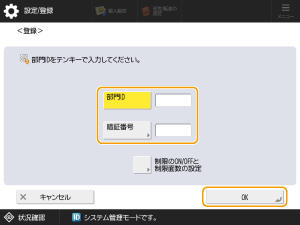 「00」や「0000000」のように、0だけの部門IDや暗証番号は登録できません。