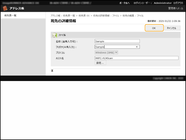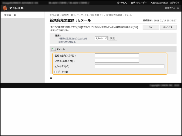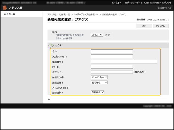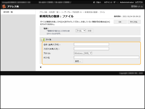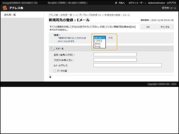 [管理者用宛先表]は、AdministratorまたはDeviceAdminの権限を持つ管理者だけが使用できる宛先表です。