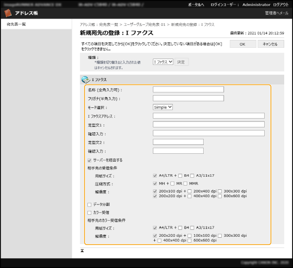 リモートUIからアドレス帳への宛先登録やアドレス帳の確認/編集を行う方法を説明します。
