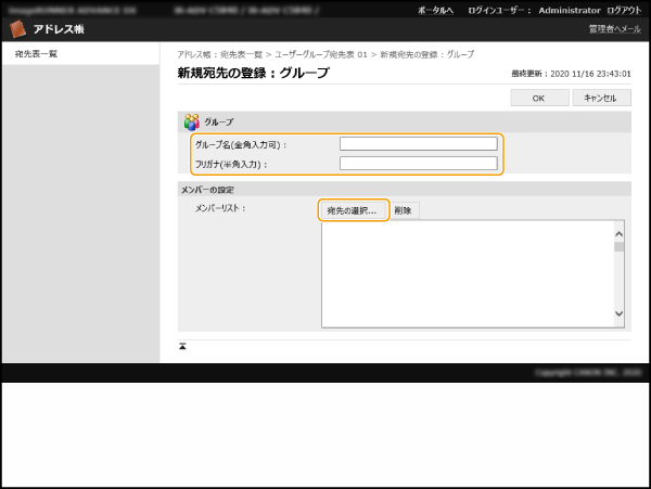 ユーザーグループ名を変更した場合に、連動してユーザーグループ宛先表の名称も変更するように設定することができます。管理者権限のあるユーザーでリモートUIからログインしてから、[設定/登録]