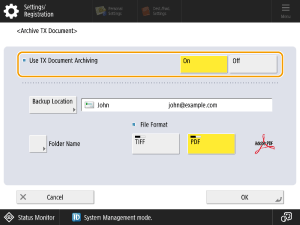 Press <Folder Name>, specify the type of folder in which backup documents will be saved and then press <OK>.