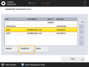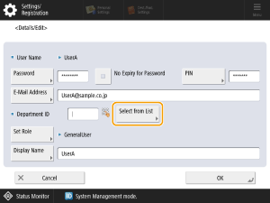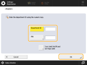 The user information and passwords used for managing department IDs must match the information registered for local device authentication in User Authentication. If a registered department ID or PIN has changed, for example due to machine information distribution, you should also change the user information used for local device authentication.