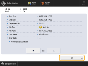 Select the print job you want to check the details for and press <Details>.