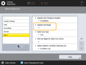 Registering Unit Names and Fax Numbers for Multiple Fax Lines