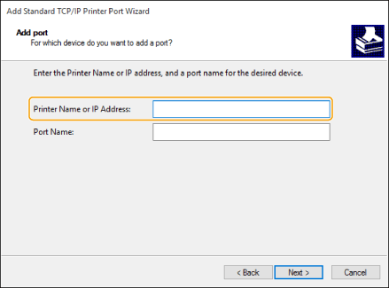 Enter the [Printer Name or IP Address] and click [Next]