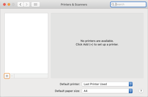 If a pull-down button appears when you click [+], select [Add Printer or Scanner].